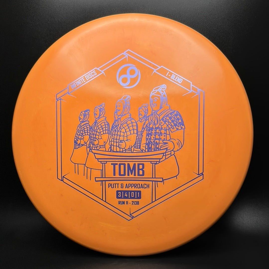 The TOMB is a flat-topped, low-profile, putt-and-approach disc with a comfortably smooth, beaded rim. The Tomb has just the right amount of stability to cover ground while threading the needle on approach shots, whether thrown forehand or backhand. It can also be used as a crossover mid-range, driving putter, or to hold the line while putting for distance or in moderate winds.