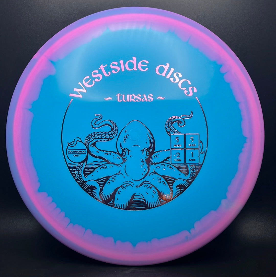 The Tursas is Westside's most controllable midrange disc. Designed with the everyday player in mind, the Tursas will make playing disc golf more fun. It should allow you to make a midrange anhyzer while you are learning to play. Great for ladies and kids as it has a shallower grip than most mid ranges available on the market. For professional players, it makes a great anhyzer midrange. For lower speed arms, it will glide straight for as long as it is in the air.