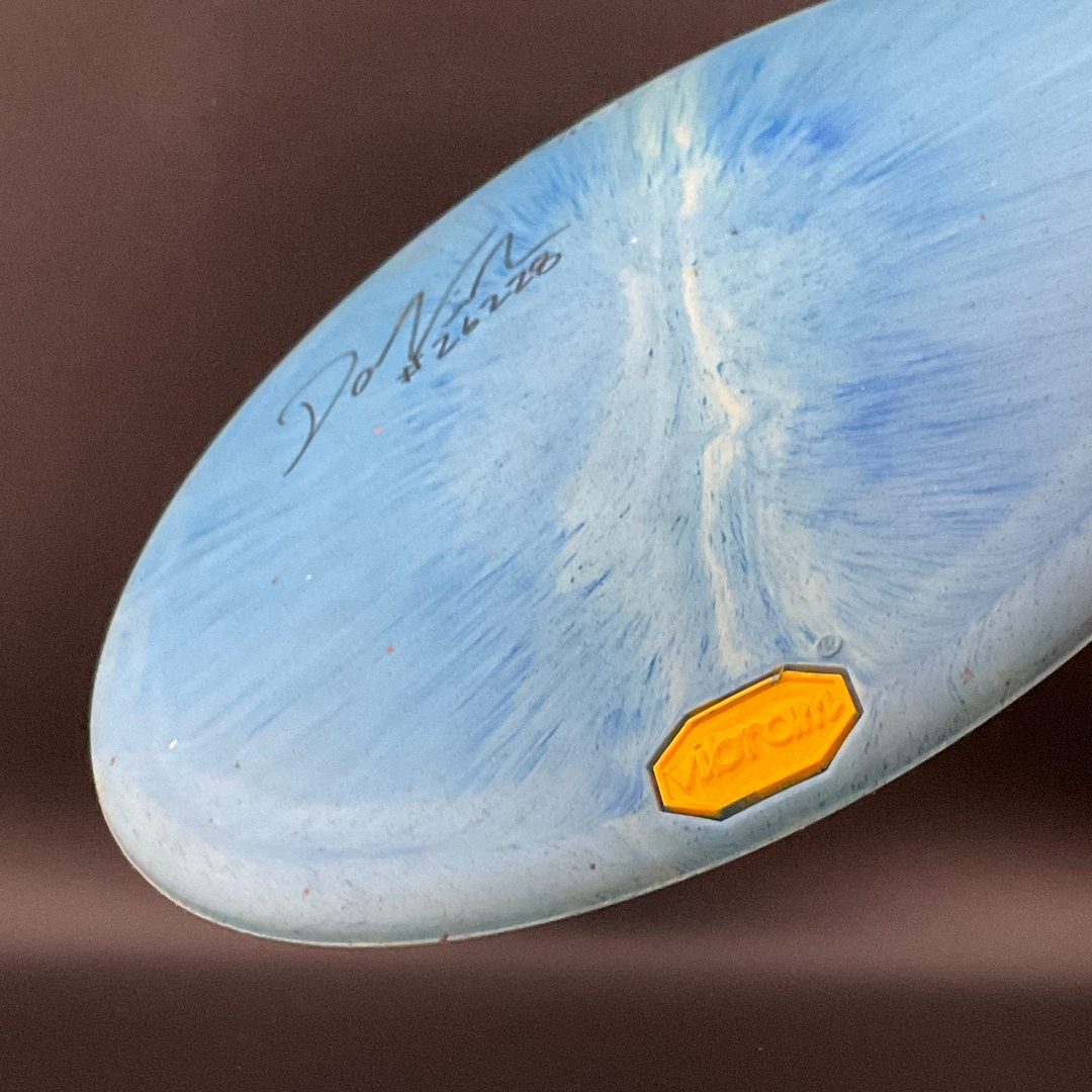 7/4/-1/2  *Scan's Stash brings an OOP Vibram trak!  Signed by Dana Vicich! Incredibly rare and beautiful engraved Trak! Medium firmness.  Storage wear possible due to plastic type.