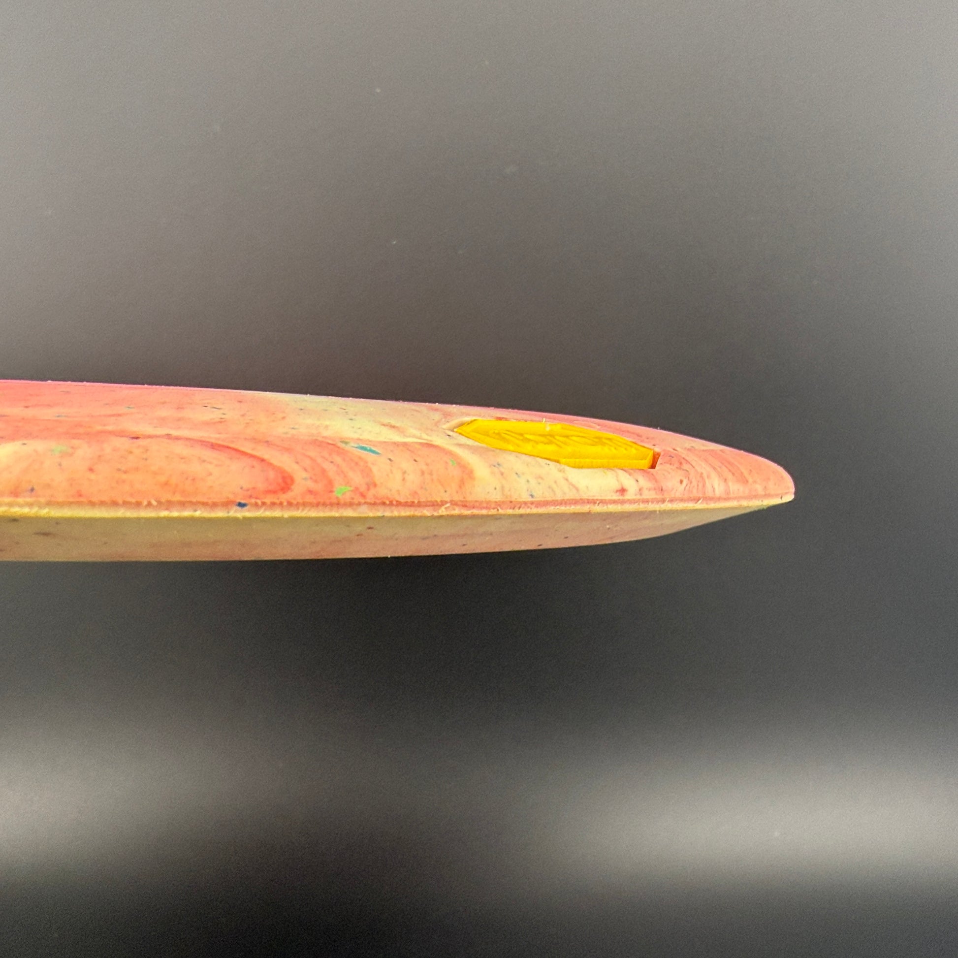 Vibram’s X-Link rubber is a unique, high-performance material known for exceptional grip and durability. It maintains a tacky, confident feel in all weather conditions, including rain and cold. X-Link rubber absorbs impacts well, helping discs retain their flight characteristics longer than traditional plastics. It’s a standout option for players who value control, consistency, and the distinct feel offered by Vibram Disc Golf.